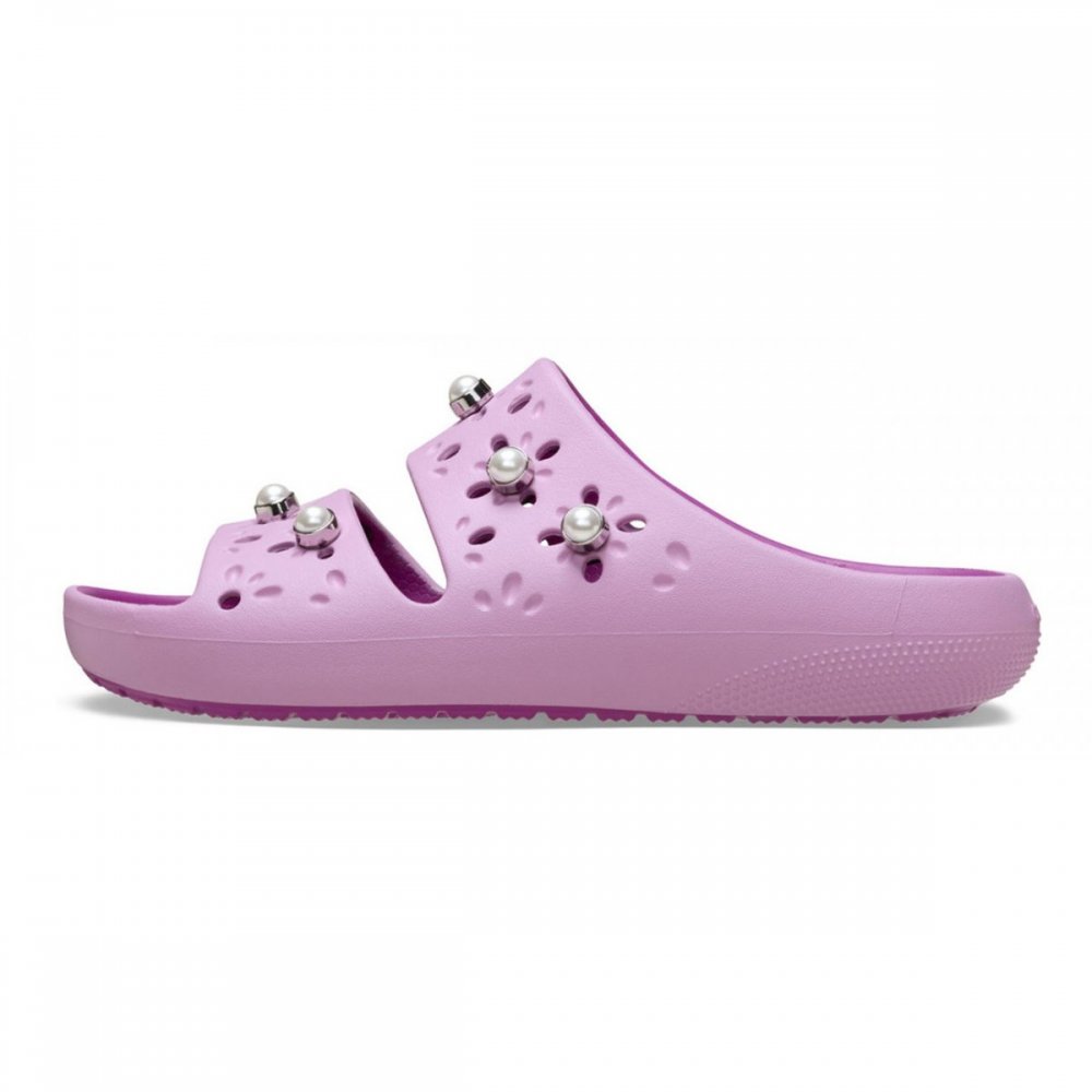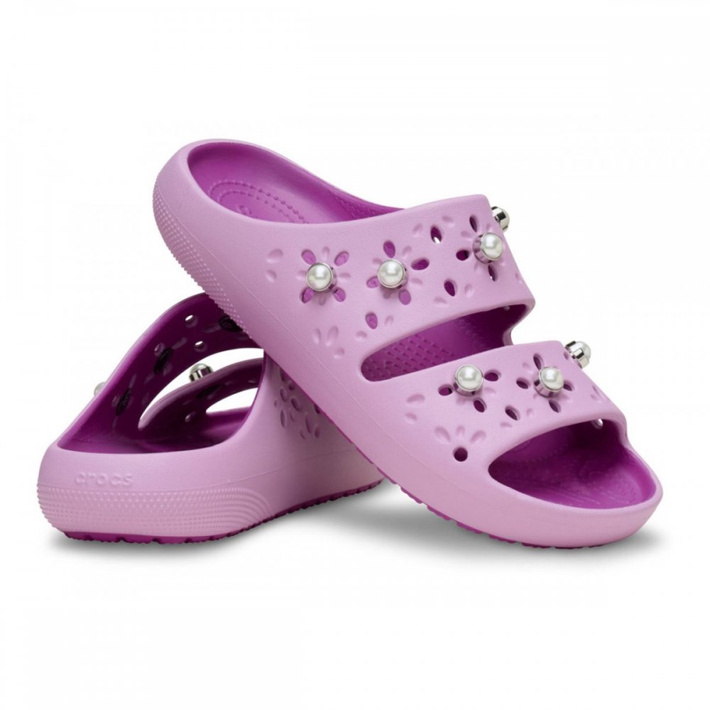 Questa nuova versione del nostro amato sandalo presenta dettagli traforati ispirati ai fiori che donano un look allegro e divertente. In più, è arricchita da eleganti decorazioni con perle. Godrai comunque della struttura interamente stampata, ultraleggera e del comfort iconico che conosci e ami — con in più la possibilità di personalizzarlo con i tuoi charm Jibbitz™. È il sandalo classico che adori… ora con un tocco floreale tutto nuovo!