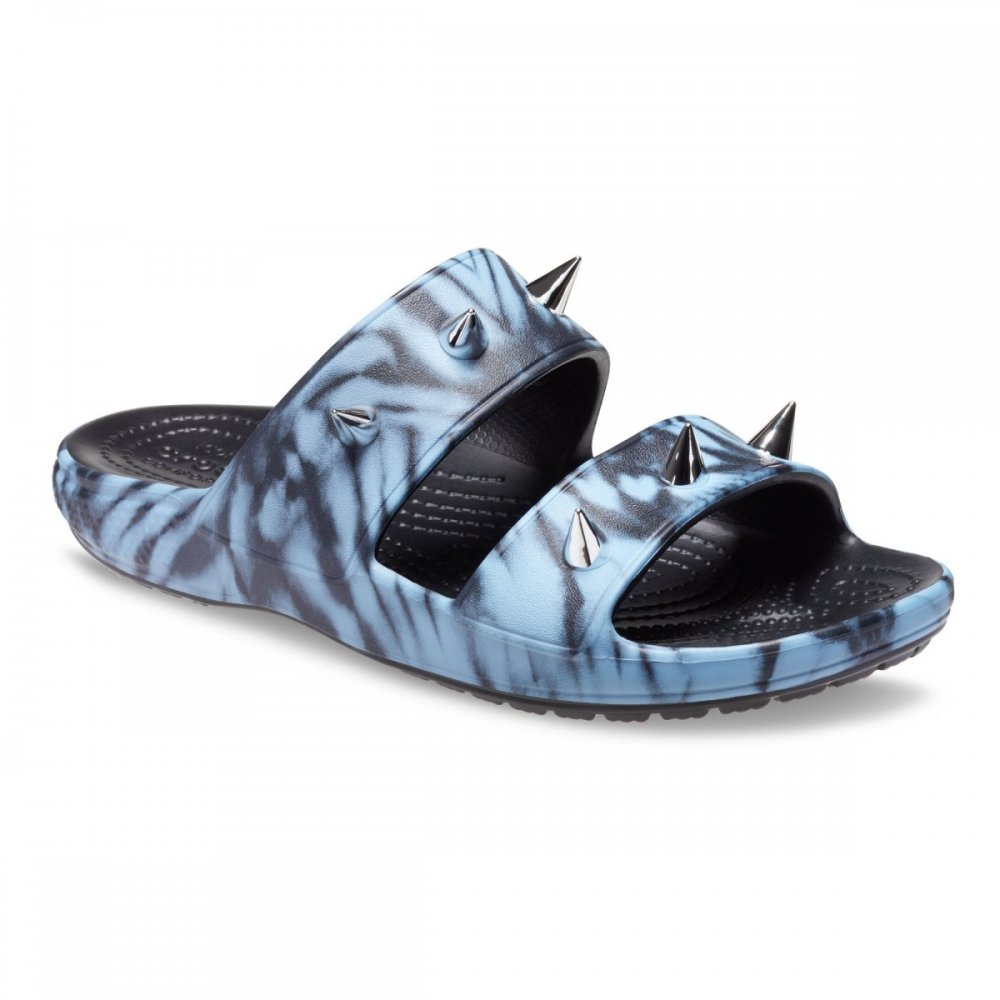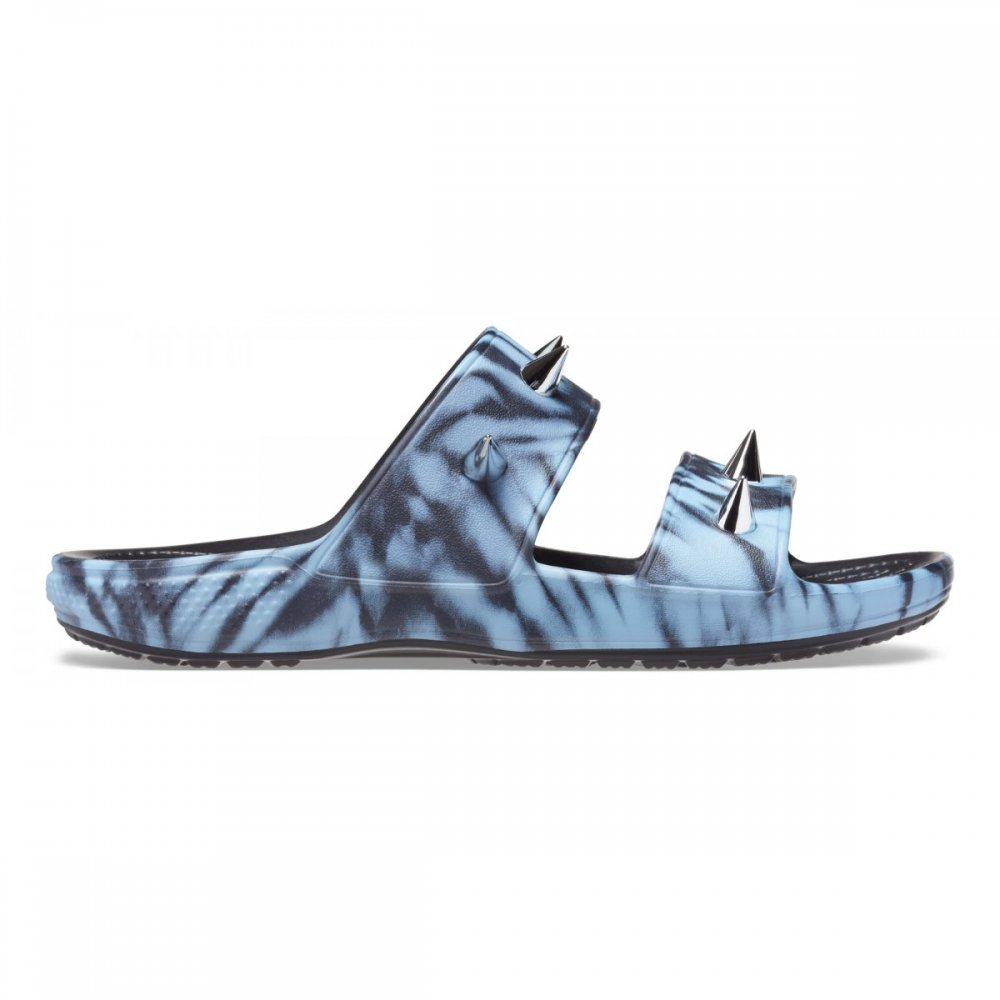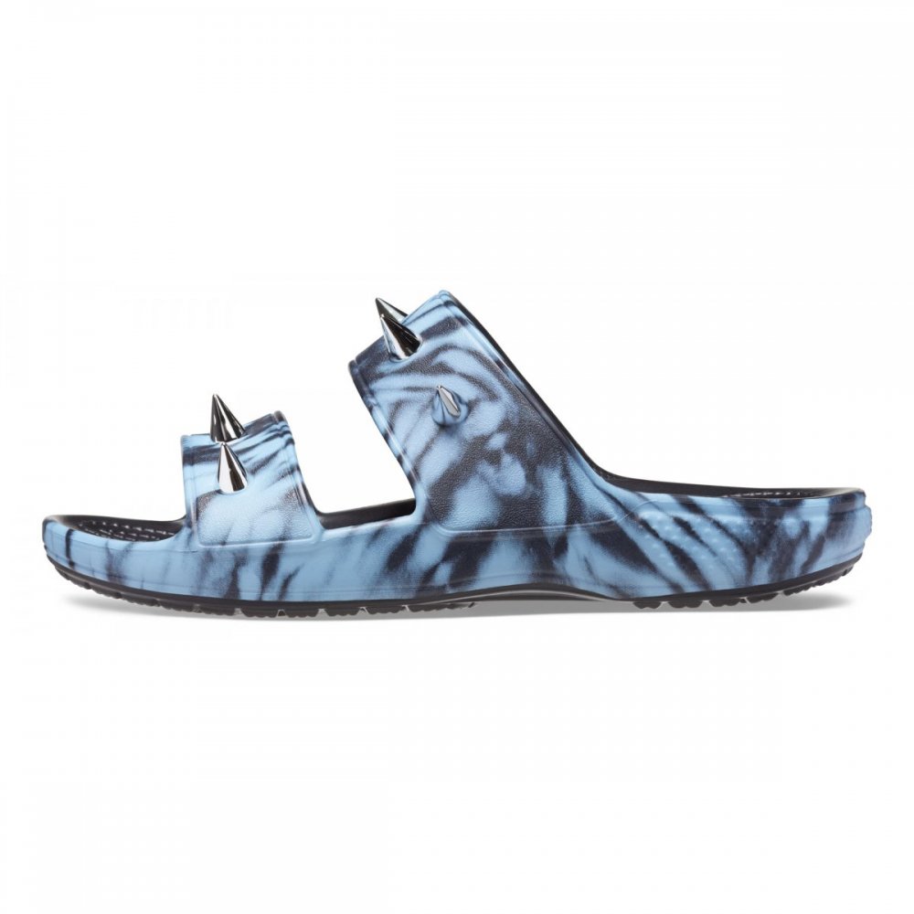Il Classic Crocs Sandal ora ha un nuovo look ribelle con il nuovo Classic Rebel Rebel Sandal. Presenta una grafica tie dye, Jibbitz™ charms metallici e appuntiti, mentre il leggerissimo e inconfondibile Crocs Comfort™ mette in risalto la sua audacia.